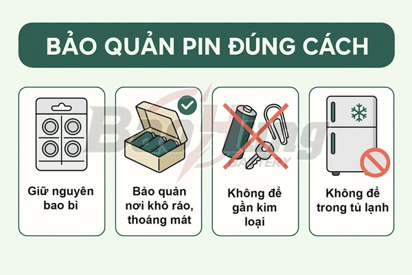 Bảo quản pin ở nơi khô ráo, thoáng mát