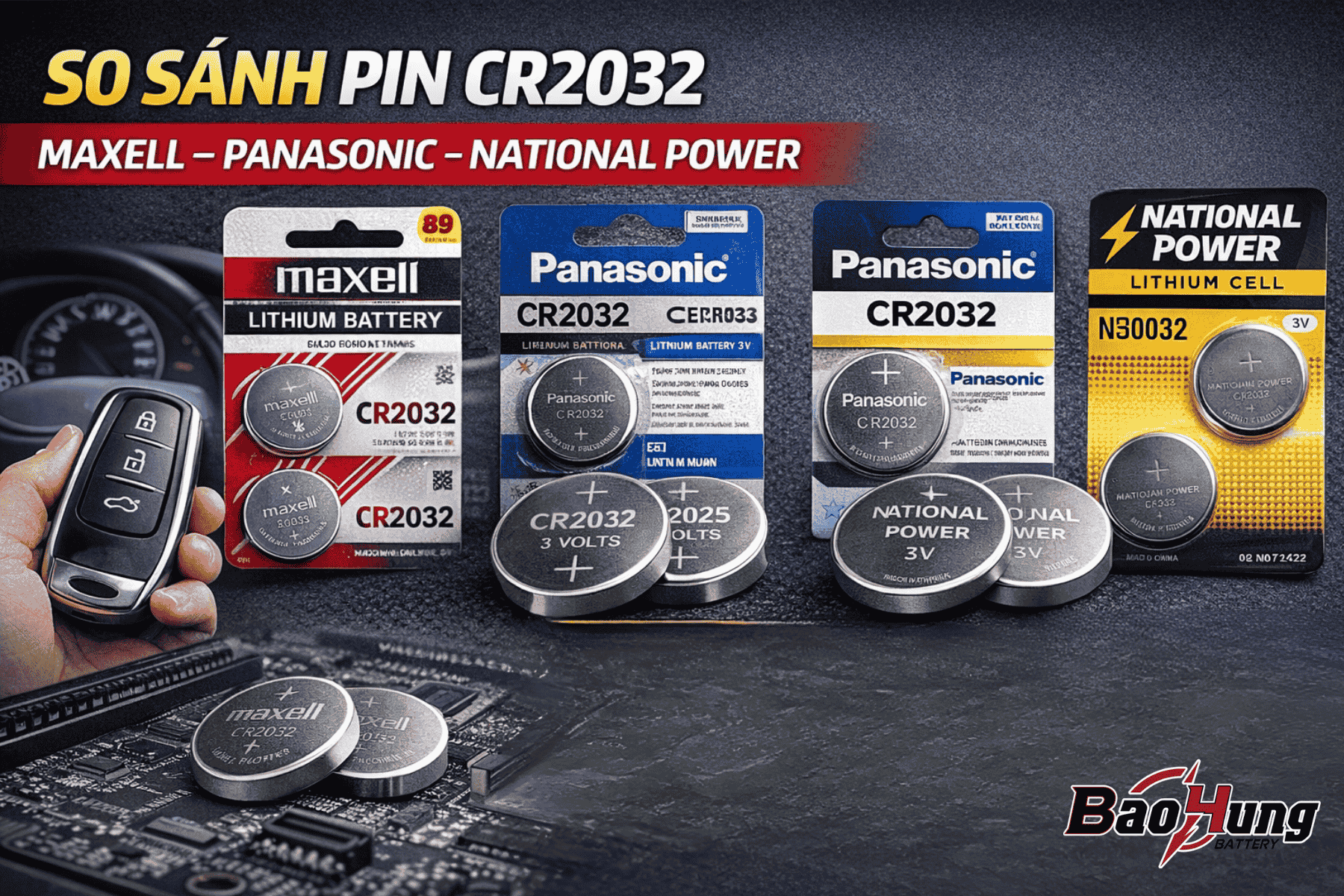 Pin CR2032 là một trong những loại pin lithium dạng nút áo được sử dụng phổ biến nhất hiện nay, đặc biệt trong smartkey xe máy – ô tô, mainboard máy tính, remote, thiết bị điện tử chính xác. Trên thị trường, người dùng thường gặp ba cái tên quen thuộc: Maxell, Panasonic và National Power. Tuy nhiên, không phải pin CR2032 nào cũng giống nhau về chất lượng, độ ổn định và độ an toàn cho thiết bị. Bài viết này sẽ giúp bạn so sánh chi tiết từng loại pin CR2032, từ đó đưa ra lựa chọn phù hợp với nhu cầu sử dụng thực tế.